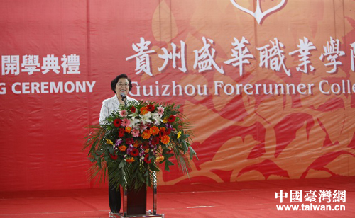 全國政協副主席、臺盟中央主席林文漪冒雨赴貴州省惠水縣出席貴州盛華職業學院開學典禮并發表講話。(中國臺灣網發 畢磊 攝)