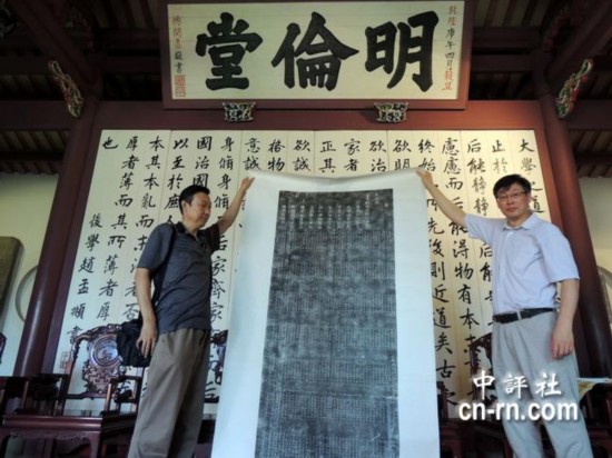 人民網9月16日電 據中評社報道,兩岸首次舉辦“清代臺灣進士專題展”即將于18日在臺南揭幕,來自北京孔廟和國子監博物館復制碑帖16日在臺南孔廟明倫堂率先亮相,見證中國科舉制度在臺灣的歷史。