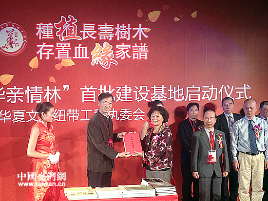 當(dāng)天的啟動(dòng)儀式現(xiàn)場,活動(dòng)豐富且蘊(yùn)含深意。來自臺(tái)灣的各家宗親會(huì)代表共同向主辦方捐贈(zèng)了上千本近30個(gè)族系的家譜和族譜。來自兩岸的共建代表宣讀了由中國國民黨十一位中常委聯(lián)署的“共建宣言”,呼吁兩岸各界同胞廣泛參與和支持建設(shè)活動(dòng)。首創(chuàng)中文“電腦”一詞和“孝敬”微編的臺(tái)灣中華文化協(xié)會(huì)理事長范光陵將特為“中華親情林”所創(chuàng)作的詩意油畫捐贈(zèng)給了主辦單位,以表達(dá)對建設(shè)活動(dòng)的熱心參與和支持。