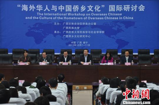 “海外華人與中國僑鄉文化”國際研討會12月8日在廣西民族大學開幕。來自澳大利亞、日本、泰國、馬來西亞、新加坡以及中國大陸、臺灣等地高等院校、科研機構的70多名專家學者與會。