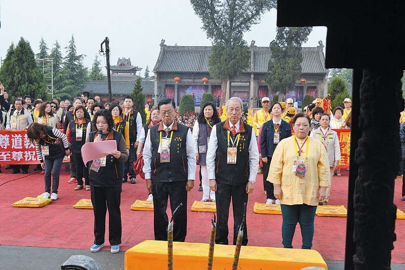 后土圣母在臺灣被稱為地母至尊,是與皇天并列的最高神,廣有信眾,站在獻殿前主祭臺下的人群中,就有從寶島臺灣趕來的66名后土信眾及15家島內廟宇負責人。