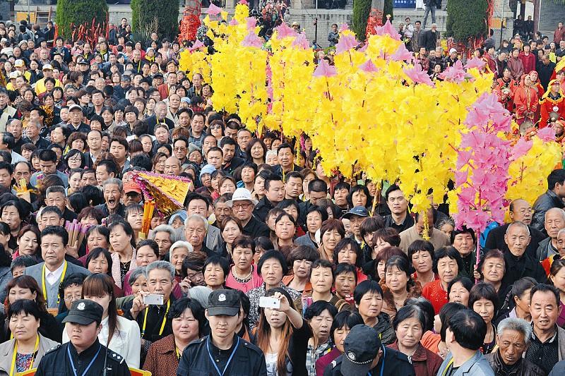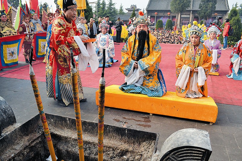 17日上午的祭祀儀式,重現皇家祭祀后土的隆重!盎实邸薄盎屎蟆币拦糯鷥x程,對后土圣母九拜敬香焚裱,行九叩大禮之后,宣讀祭文。