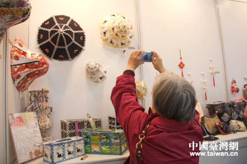 參觀者用相機記錄下精致的手工藝品。(中國臺灣網 馬一娜 攝)