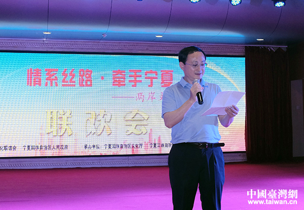 由中華文化聯誼會和寧夏回族自治區人民政府共同舉辦的“情系絲路·牽手寧夏——兩岸文化聯誼行”大型文化交流活動今天在銀川圓滿落幕。圖為文化部港澳臺辦副主任魯雁飛在當天的閉幕聯誼會上致辭。(中國臺灣網 普燕 攝)