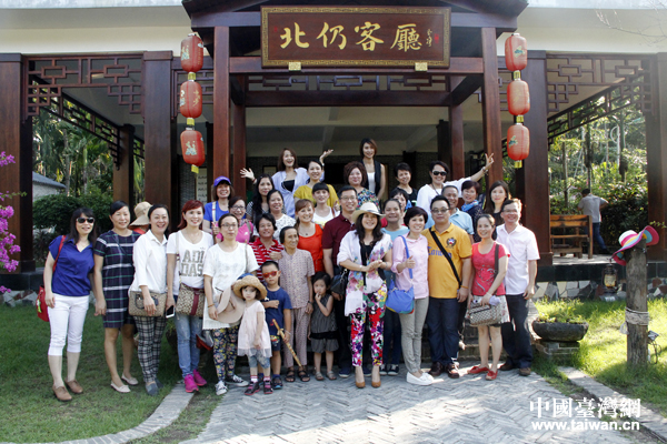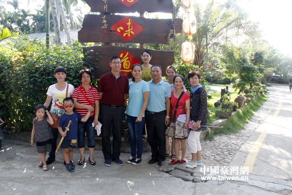 海南省臺辦副主任陳碩和省親團成員在鄉(xiāng)愁味道前合影(中國臺灣網(wǎng) 郜利敏 攝)