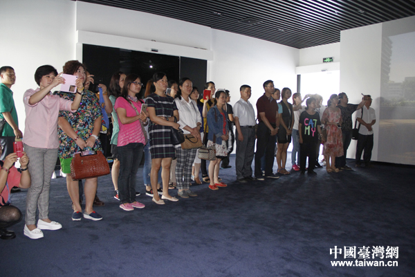 省親團成員在澄邁生態(tài)軟件園區(qū)觀看其宣傳片(中國臺灣網(wǎng) 郜利敏 攝)