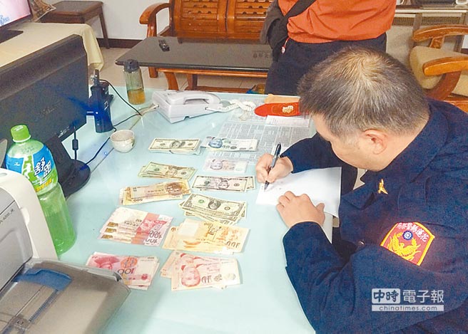 新城警方一一清點(diǎn)良心司機(jī)拾獲的一袋外幣,發(fā)現(xiàn)幣值高達(dá)新臺(tái)幣17萬(wàn)元,并通報(bào)警廣協(xié)尋失主。圖片來(lái)源:臺(tái)灣中時(shí)電子報(bào)