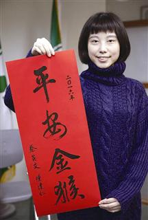 東南網2月3日訊(海峽導報記者)據臺灣“聯合新聞網”2日報道 民進黨媒體創意中心主任李厚慶2日指出,黨中央推出由蔡英文、陳建仁落款的“平安金猴”春聯,取其閩南語諧音“平安真好”。據了解,這幅字由美女書法家林佳穎題寫。