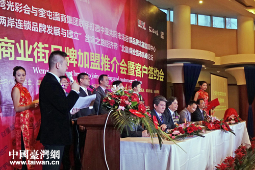 中國臺灣網12月12日奎屯消息 12月9日,由臺灣光彩促進會與新疆奎屯溫商集團共同舉辦的兩岸連鎖品牌商業論壇在新疆奎屯市隆重舉行,這是兩岸服務貿易協議簽訂后,臺灣連鎖品牌首次抱團進軍西北邊疆城市。