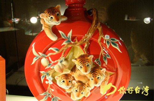 法藍瓷創立于2001年,隔年即光芒初露,榮獲“紐約禮品展首獎”,其獨創的中西合并的設計風格,廣受各界好評。在兩岸交流中,法藍瓷多次作為臺灣方面的禮品贈送大陸。前不久舉行的第四次兩岸兩會領導人會談為,海基會董事長江丙坤送給海協會陳云林會長的禮品就是一件法藍瓷――“安和升祥”紀念瓶,上面浮雕了兩只拙樸可愛的鵪鶉,仰望著上方結實、飽滿的兩串稻米。鵪鶉與稻禾相伴,取其諧音“安和”之意,代表對兩岸安定、和平的期盼,也寓意兩岸攜手合作,為兩岸人民共創安居樂業的美好未來。