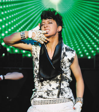 韓庚演唱《飛蛾撲火》跳自創“老虎舞”,很有勁道的舞步配合張牙舞爪的“虎爪”,頗有發怒猛虎的感覺。圖片來源:臺灣《聯合報》