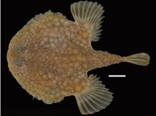“中研院”生物多樣性研究中心博士后研究員何宣慶與2位美國學者發現的2個新魚物種之一“雙棘副棘茄魚”。