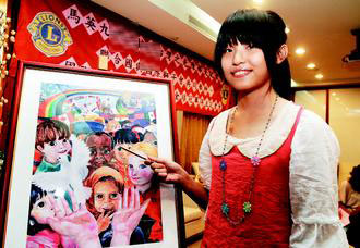 中新網(wǎng)10月8日電 據(jù)臺灣《聯(lián)合報》報道,臺中市五權初中三年級學生陳郁旻,參加2009到2010年度聯(lián)合國和國際獅子會合辦的國際和平海報創(chuàng)作比賽,擊敗35萬名參賽者,勇得世界第一。