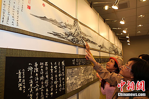 3月7日下午,出自大陸名家之手的長幅剪紙藝術(shù)作品《富春山居圖》(上)、《清明上河圖》,一同亮相張家口蔚縣民俗文化藝術(shù)展,吸引臺灣民眾駐足欣賞、評頭品足。中新社發(fā)董會峰 攝