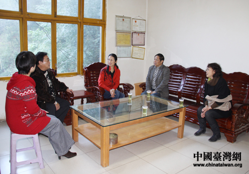 走訪中,李靜(左一)認真聽取了貴陽臺農種養殖有限公司公司董事長李昭宏(左二)對生產經營流程,市場前景分析、企業回饋社會等情況介紹。(貴陽市臺辦 王康 攝)