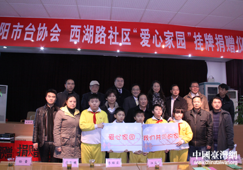 中國臺(tái)灣網(wǎng)12月19日貴陽消息 日前,貴陽市臺(tái)協(xié)會(huì)南明區(qū)西湖路社區(qū)“愛心家園”掛牌成立。貴陽市委統(tǒng)戰(zhàn)部副部長、市委臺(tái)辦主任李靜,貴陽市委臺(tái)辦副主任劉筑琪,南明區(qū)委常委、組織部長楊俊基及西湖路辦事處相關(guān)領(lǐng)導(dǎo)等出席了掛牌及捐贈(zèng)儀式。