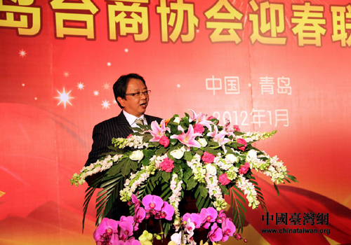 中國臺灣網1月10日青島消息 日前,由青島市臺辦、青島市臺資企業協會聯合主辦的2012年臺商迎新春聯誼會在青島凱賓斯基飯店舉行。山東省臺辦巡視員張志強,中共青島市委常委、副市長姚堅出席聯誼會并致辭。青島市委副秘書長、市臺辦主任田云南和青島市有關部門負責人與300多位在青臺商和家屬歡聚一堂,喜迎龍年到來。