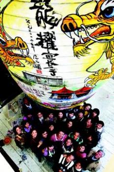 臺中豐原區政府廣場昨天掛起名為“龍耀寰宇”的巨大燈籠,此手工燈籠高約兩層樓、寬3.3米。它是由20多名畫師費時數月打造的,是全臺最大的水墨畫手工燈籠。(中國臺灣網 李迪)