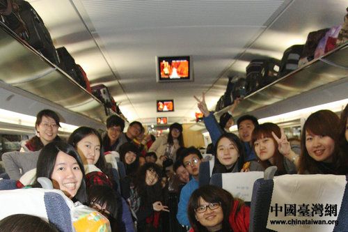 兩岸學子開心體驗京滬高鐵。(中國臺灣網 郭瑩瑩 攝)