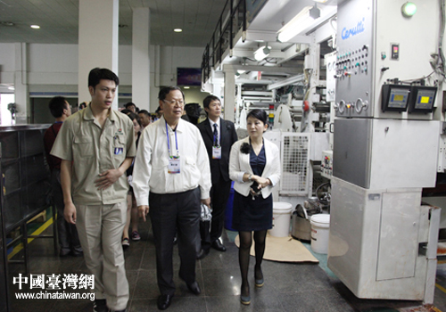 中國臺灣網5月24日貴陽消息 日前,臺灣青年菁英考察團一行來到小孟工業園內的勁嘉包裝廠,立刻被廠區一排排先進的生產設備所吸引。聽介紹,貴州知名的煙草如黃果樹牌香煙及許多知名高端禮品的包裝,都出自這里。
