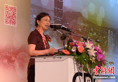 圖為6月26日,中國文化部文化市場司副巡視員傅燕梅在開幕式上做《加強兩岸游戲產業交流,促進游戲市場健康發展》主題演講。中新社發 杜燕 攝