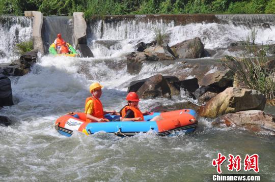 營員們在五指山大峽谷漂流 周鳳婷 攝