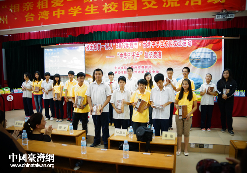 在梧州市第十五中學的禮堂,氣氛緊張而熱烈,梧州學子和臺灣學子在“中華五千年”知識競賽首度會面,兩地選手賽場上共同商量、互相學習。臺上的兩岸青少年充分發揮自己的聰明才智,臺下的觀眾掌聲熱烈持久。通過比賽,海峽兩岸青少年加深了對中華五千年文明史的認同,進一步增強了作為中華兒女的民族認同感和自豪感。