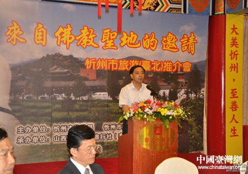 市委常委、副市長(zhǎng)王士樺推介忻州旅游資源。(圖片來源:忻州市臺(tái)辦)