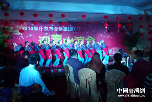 四川什邡市舉辦臺僑胞(屬)迎春聯誼會,圖為聯誼會上節目表演。(圖片來源:什邡市臺辦)