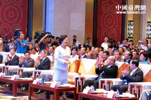 全國政協副主席、臺盟中央主席林文漪在開幕 式上向出席大會的各界 及臺灣鄉親們表示問候。(中國臺灣網發,吳藝煤 攝)