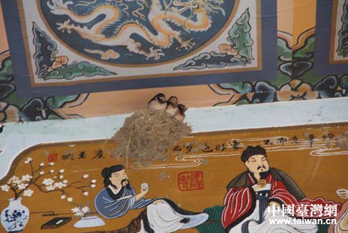 赫圖阿拉城屋里的一窩小燕子吸引了大家的注意。(中國臺灣網 吳曉寒 攝)