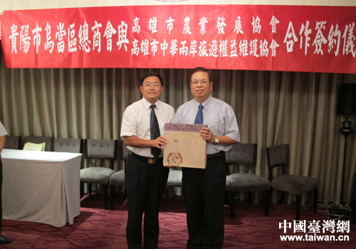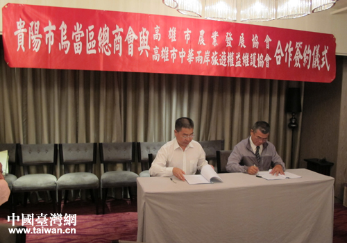 推介會上,烏當區總商會與高雄市農業發展協會、高雄市中華兩岸旅游權益維護協會分別簽了《烏當區羊午水庫旅游》和《烏當區美麗鄉村幸福家園旅游示范帶》等項目合作意向書,推進兩地經貿合作。(中國臺灣網、貴陽市烏當區統戰部聯合報道)