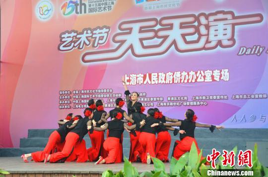 圖為丹中文化藝術團在上海國際藝術節“天天演”舞臺上表演《今夜無眠》!堢妗z