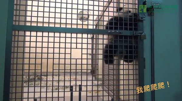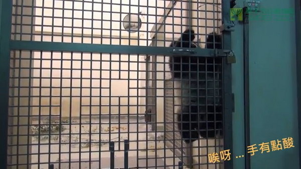 胖寶寶圓仔體重逼近11公斤,調皮的牠近來不聽話,老愛“趴趴走”、找樂子,昨天還趁著媽咪不注意時,上演攀爬鐵網,大秀“蜘蛛熊”英姿,不料耐心不足,只爬了8秒鐘就宣告放棄。