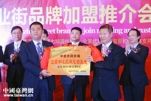 臺灣光彩促進會臺商連鎖委員會向北疆品牌基地授牌。(中國臺灣網)