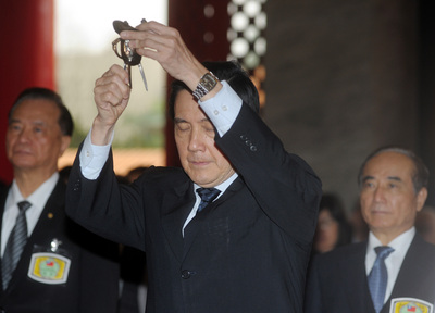 馬英九(中)3日在臺北圓山“忠烈祠”主持2014年遙祭黃帝陵典禮。(圖自臺灣“中央社”)