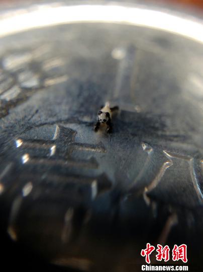 大陸贈臺大熊貓團團圓圓的后代圓仔給臺灣民眾帶來了歡樂,也成為臺灣藝術家表現的對象。近日,臺灣著名微雕家陳逢顯創作一只“微雕熊貓”,只有0.5毫米長。