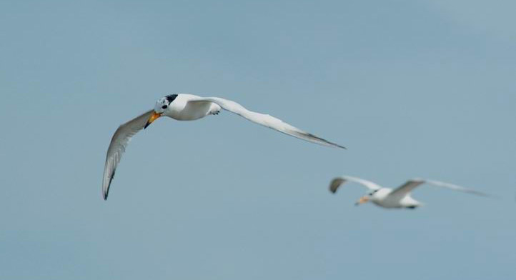 “一直到中午,我們都在靜靜地觀鳥。突然兩只嘴尖黑黑的鳥出現(xiàn)在一群紅嘴巨鷗當(dāng)中。我當(dāng)時就判斷這是兩只中華鳳頭燕鷗。”倪光輝回憶說。