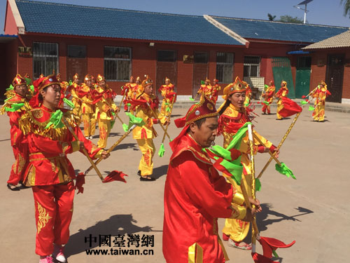 如今的黃羊村里的600多戶人家,上到六七十歲的老人,下到五六歲的娃娃,都能隨時隨地舞上一段(中國臺灣網(wǎng) 蕪?fù)?攝)