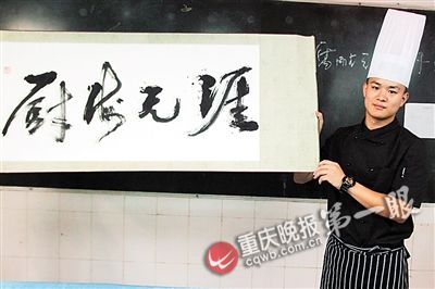 涂建川的同事韓嘯告訴重慶晚報記者,涂建川不僅菜品做得好,字也寫得漂亮,空閑的時候,都會看他練字,也經常有人圍觀他寫字。