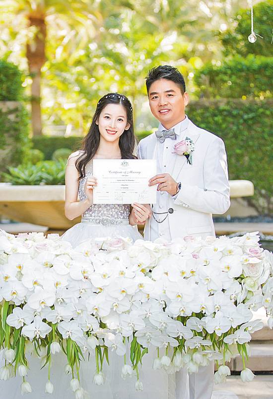 這對新人與澳大利亞的緣分不淺,據悉今年5月底劉強東在澳大利亞的一艘游艇上求婚成功。據稱,現場僅十多位劉強東的親友見證。當月24日,還有網友目擊到劉強東和奶茶妹妹在悉尼大學拍婚紗照。直到今年的8月8日,有網友微博爆料,劉強東和奶茶妹妹現身北京市朝陽區民政局領證,這對相差19歲的情侶終于修成正果。