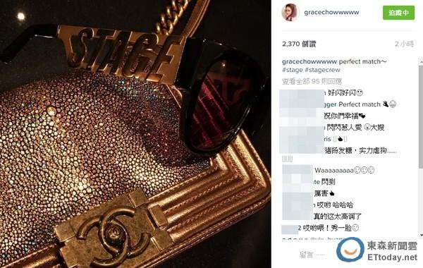 周揚青25日貼出羅志祥親自領(lǐng)軍設(shè)計的品牌“stage”墨鏡,在文中隱藏曬恩愛字句“perfect match(天生一對)”,還盡責(zé)地當(dāng)女主人角色,幫男友大力宣傳品牌名稱,讓粉絲羨慕直喊“這招厲害!”