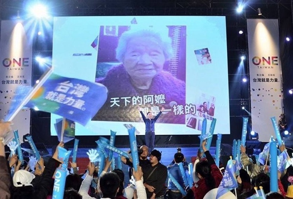 據臺灣“聯合新聞網”報道,國民黨候選人朱立倫在辯論會提到淡水阿嬤勸他參選的故事,引發一波“阿嬤”風潮,上周淡水阿嬤本人親自現身造勢場合。朱立倫在晚會上秀出自己親生阿嬤的照片,并向全臺支持他的阿嬤們表示感謝。