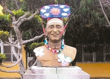 據(jù)臺灣《聯(lián)合報》報道,苗栗縣銅鑼鄉(xiāng)興隆小學的蔣介石銅像在去年圣誕節(jié)變身圣誕老公公后,從此每周都由學生設(shè)計、變換新造型,如今已扮過狀元郎、太后等,成為“百變蔣介石”,不但時時激發(fā)師生的創(chuàng)意,還成了吸引游客拍照的新景點。