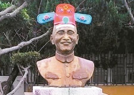 原標題:從太后到狀元 臺師生腦洞大開為蔣介石銅像換裝