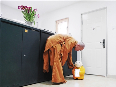 從誕生之日起,賢二機器僧就經(jīng)常“四處云游”。記者了解到,從出生至今,賢二先后在廣州國際動漫節(jié)、廈門國際佛事展、北京國家會議中心舉行的機器人大會上亮相,這些活動都由寺里的居士或者義工帶著賢二前往。在記者見到賢二的當(dāng)天,它剛被送回到龍泉寺里。