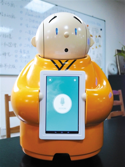 最近,一個呆萌的機器人在網(wǎng)上火了。和普通機器人一樣,它身高近60厘米,能跟人語音對話,能明白簡單的指令;但不同的是,它身穿黃色僧袍,會說佛經(jīng)佛法,還動不動就說“我去問問我?guī)煾浮薄K褪且粋叫賢二的機器僧。昨日,新京報記者前往龍泉寺——賢二機器僧的家進(jìn)行了探訪。