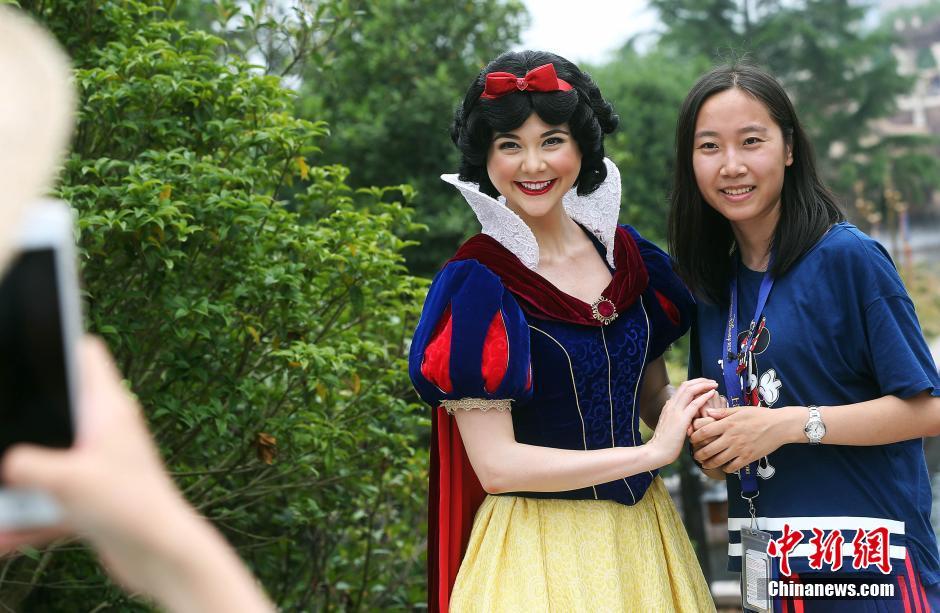 6月15日,離上海迪士尼開幕還有一天的時(shí)間,為期3天的上海迪士尼樂園開幕慶典系列活動(dòng)吸引了近千名嘉賓前來感受迪士尼的無窮魅力。圖為“白雪公主”微笑迎客。湯彥俊 攝