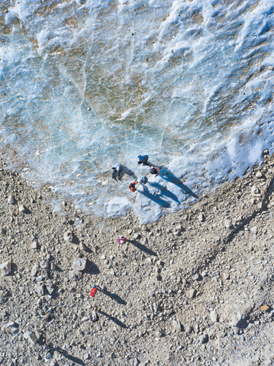 科研人員在冰面上取樣。記者 徐馭堯攝