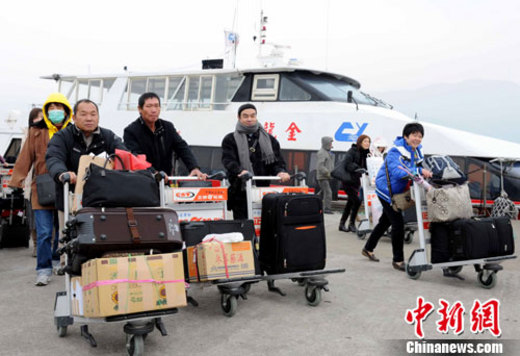 隨著農歷兔年春節臨近,祖籍福建的臺胞也加快了返鄉過年的步伐。30日下午3點30分左右,“金龍輪”載著24名旅客從馬祖抵達福州馬尾對臺客運碼頭,這是“兩馬”航線當天的最后一個航班。